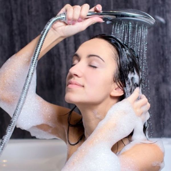 Xoa xà phòng lên cơ thể và xả nhanh chóng để làm sạch da. Rồi sử dụng xả để rửa sạch xà phòng và sữa tắm khỏi cơ thể.