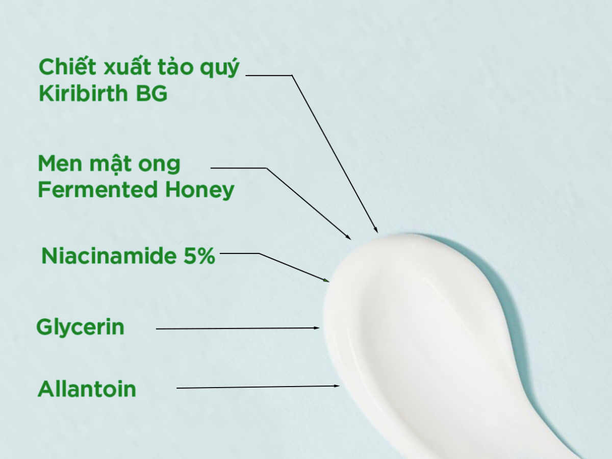 30% men mật ong Fermented Honey lên men từ enzim hoa hồng Bulgaria kết hợp với vitamin B3 và E giúp làm mờ nám, đồng thời dưỡng trắng da một cách tự nhiên và an toàn.