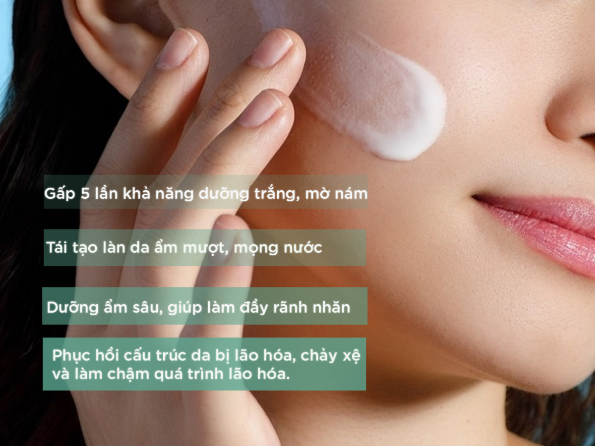 Dưỡng chất cần thiết giúp làm đầy rãnh nhăn, phục hồi cấu trúc da, đồng thời chậm quá trình lão hóa da, mang lại làn da trẻ trung và đầy sức sống.