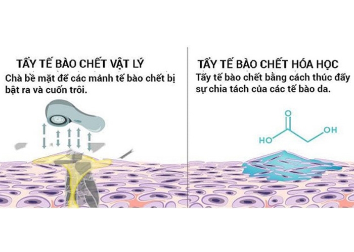 So sánh Tẩy tế bào chết vật lý Tẩy tế bào chết hóa học