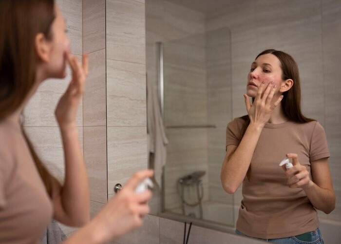 - Làm sạch da nhẹ nhàng: Rửa mặt với sữa rửa mặt dịu nhẹ, không chứa cồn hay chất tẩy mạnh, nhằm tránh kích ứng thêm cho da.